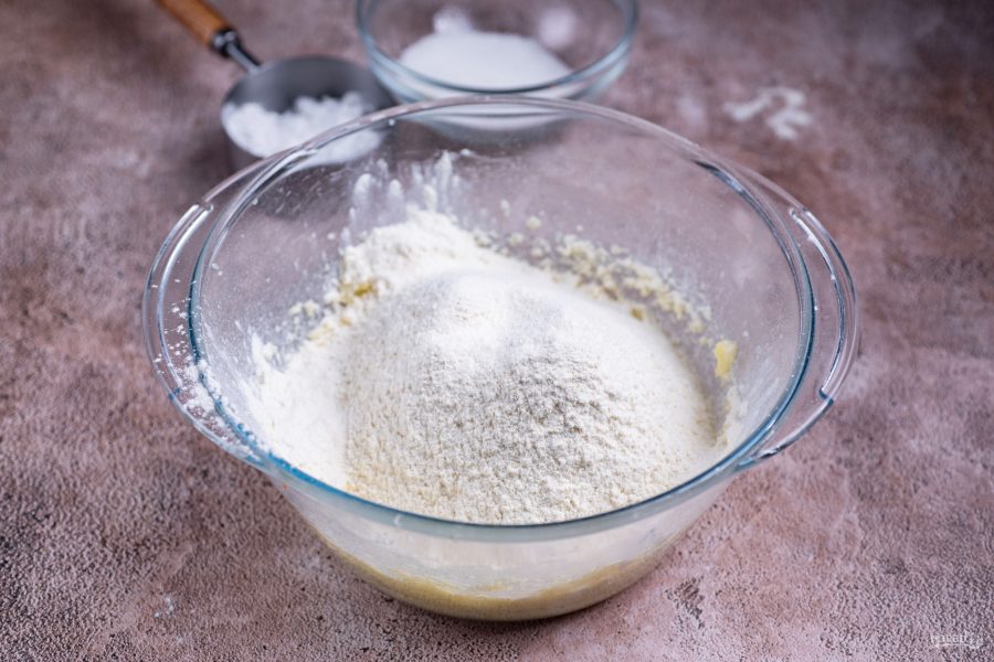 Замесите мягкое тесто, которое не прилипает к рукам. Округлите его, оберните пищевой пленкой и поместите в морозильную камеру на 15 минут.