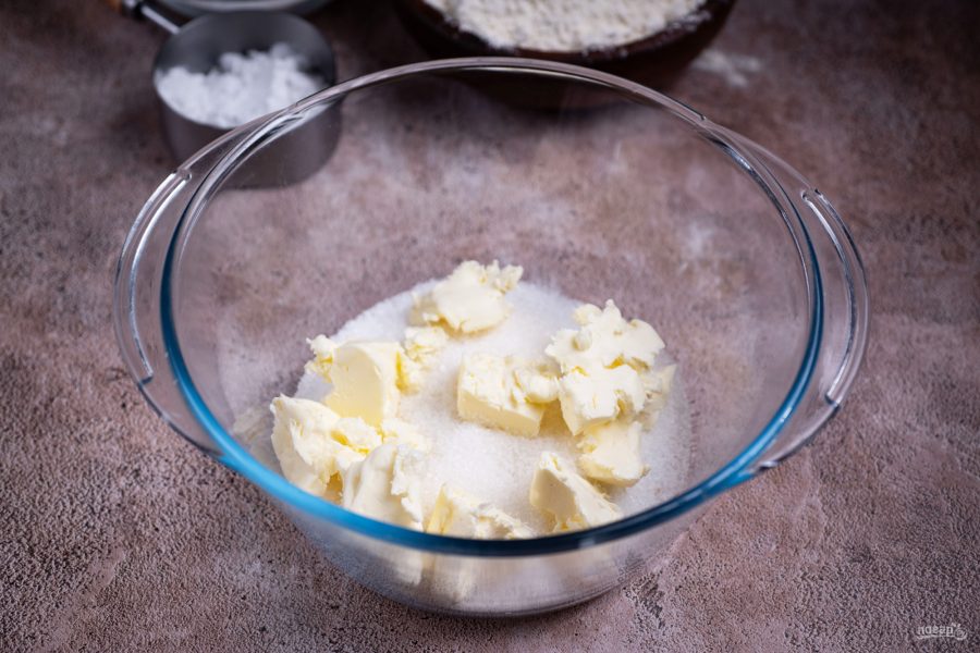 Все ингредиенты перед вами на столе. Масло выложите на стол из холодильника заранее, чтобы оно стало мягким.