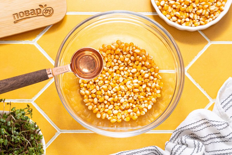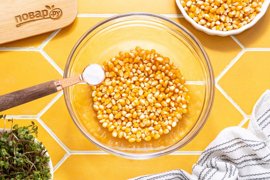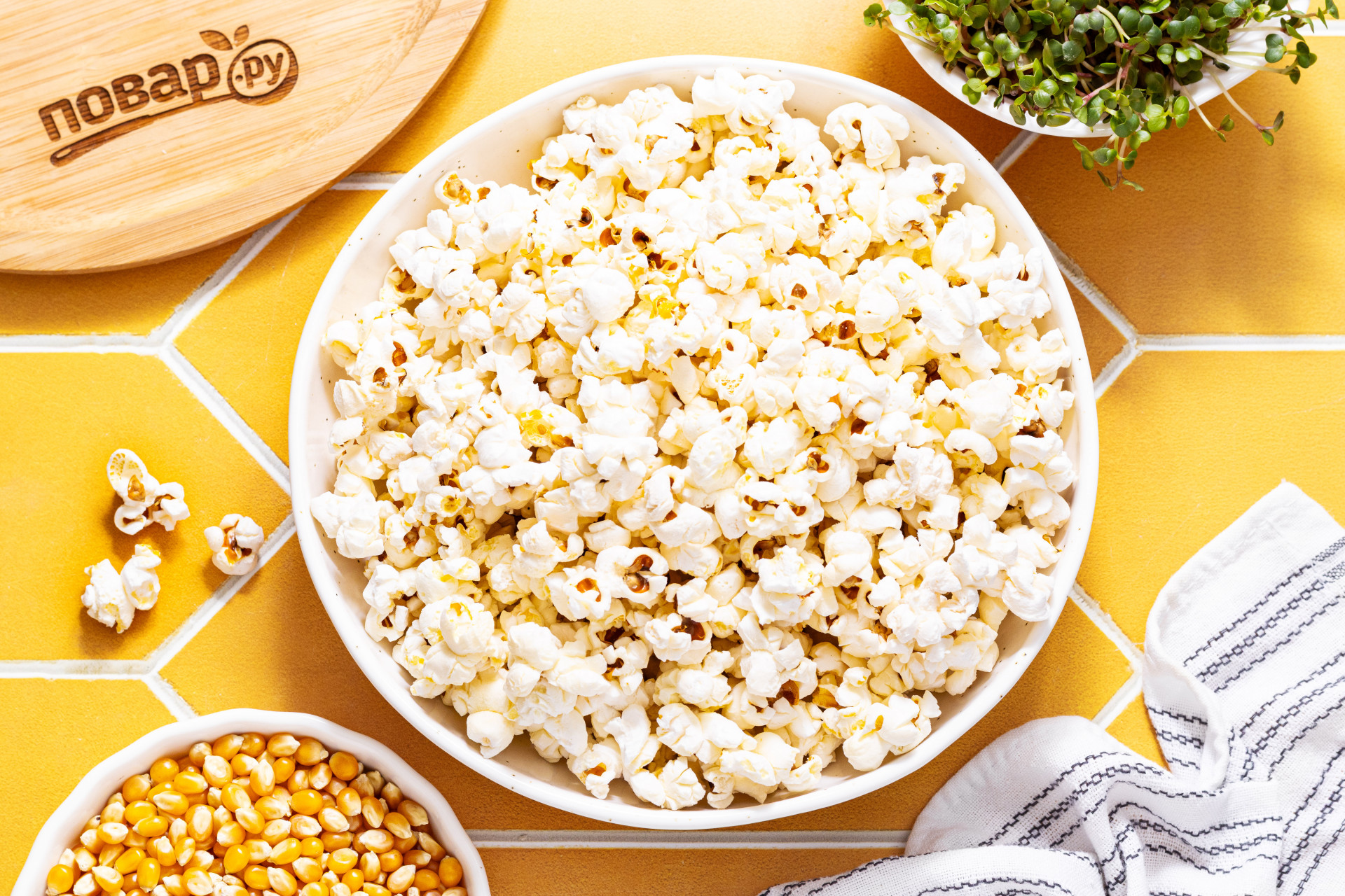 Готовьте попкорн на 200 градусов до тех пор, пока хлопки не перестанет слышно несколько секунд. Обычно приготовление покорна занимает около 10 минут. Если какие-то зерна не раскрылись, их можно доготовить отдельно или просто убрать.