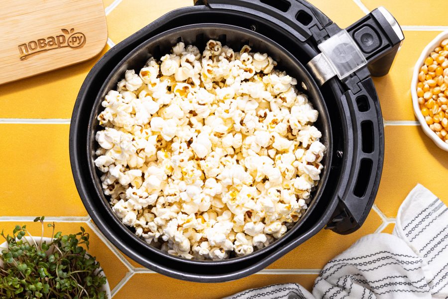 В аэрогриле можно приготовить даже попкорн! Он прекрасно разогревается до необходимой температуры, когда кукурузные зерна лопаются и становятся воздушными.