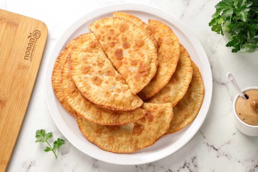 Чебуреки переложите на блюдо и подайте к столу. Приятного аппетита!
