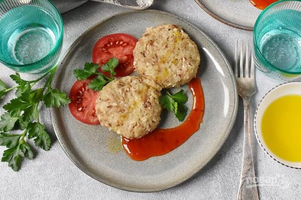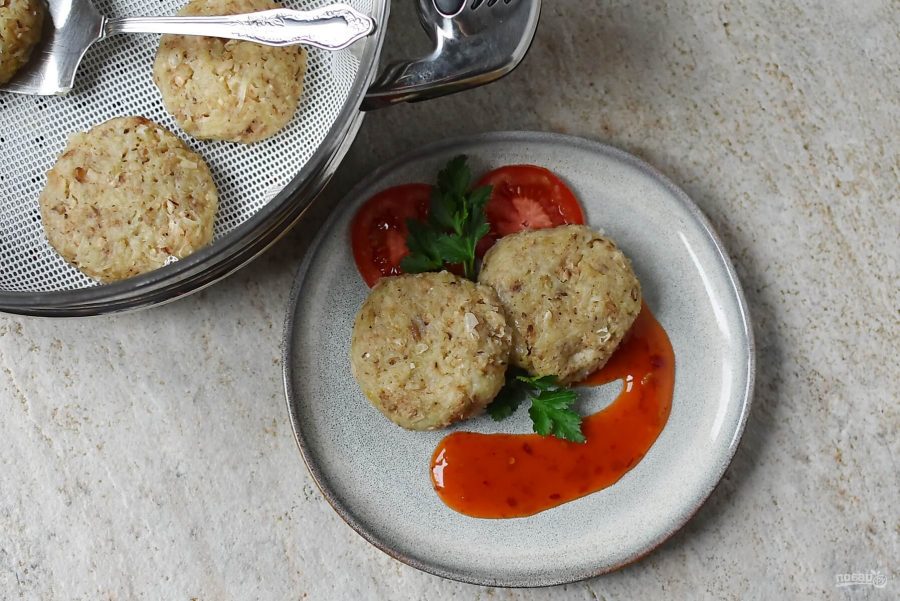 Подавайте постные паровые котлеты горячими, с постными соусами на ваш вкус, украсив свежей зеленью.