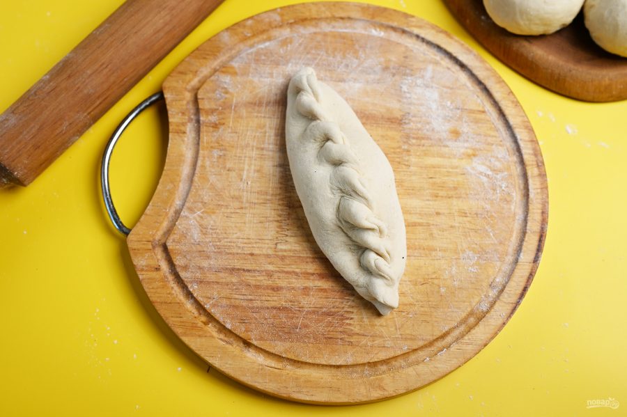 Все заготовки пирожков выложите на противень, застеленный пергаментом для выпечки. Каждую заготовку пирожка смажьте растительным маслом с помощью силиконовой кисточки. Отправьте пирожки выпекаться в заранее разогретую до 180 градусов духовку примерно на 30 минут.