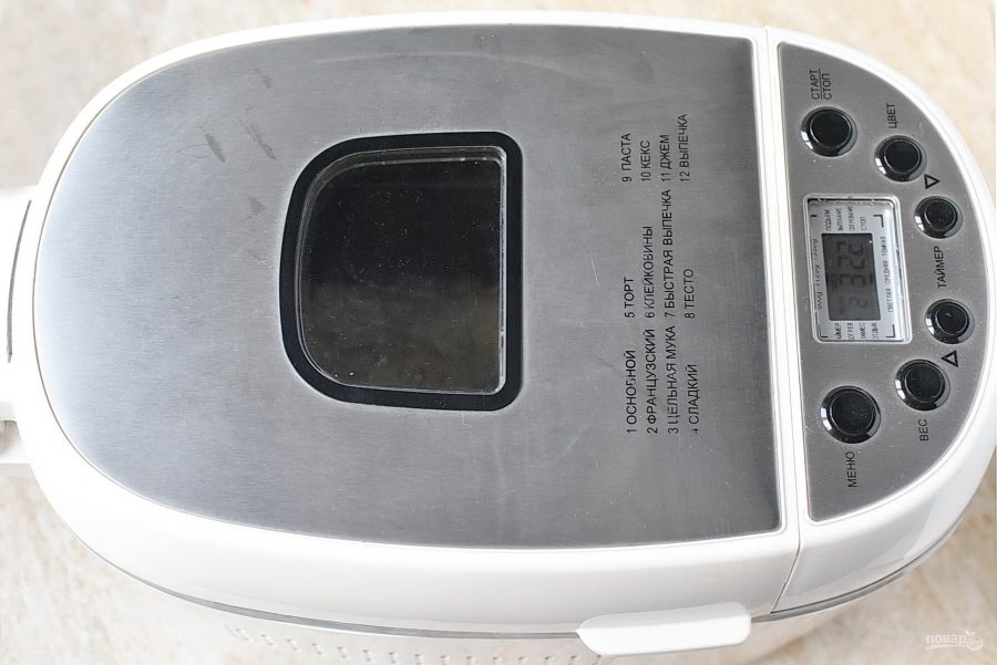Выложите продукты в ведерко хлебопечки, ориентируясь на инструкцию к вашей модели.