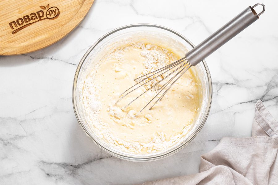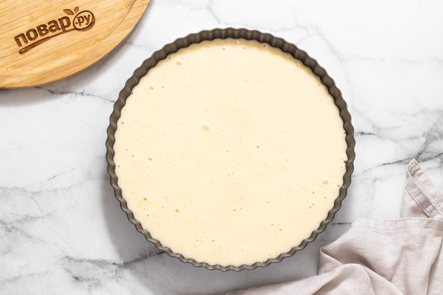 Перелейте тесто в подготовленную форму для выпечки. Дно формы я застилаю бумагой для выпечки, а края смазываю растительным маслом. Силиконовую форму можно не смазывать. Выпекайте манник 30-35 минут в заранее разогретой до 180 градусов духовке до румяного цвета.