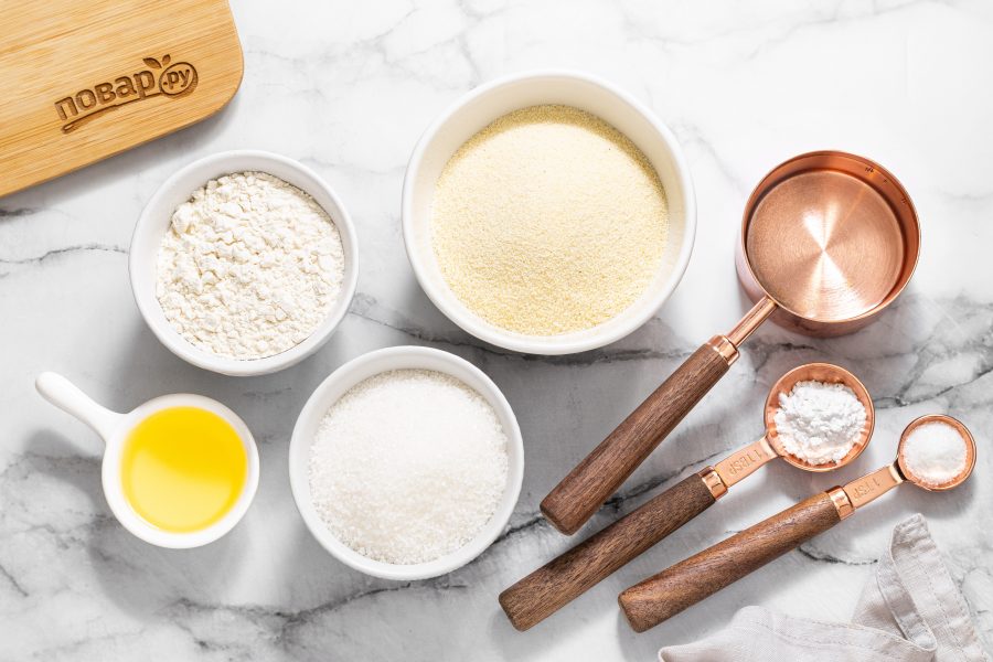 Ниже я расскажу подробнее, как приготовить постный манник. Количество ингредиентов рассчитано на форму диаметром 24-25 см. Воду можно заменить на сок, например, апельсиновый или растительное молоко, нежирное кокосовое или миндальное. По желанию в манник можно добавить изюм или любые другие сухофрукты, крупно порубленные орешки или шоколад, свежую или замороженную ягоды. Для аромата можно добавить лимонную цедру или молотую корицу. Манник получается пышным, нежный и очень вкусным! Он отлично подойдет для домашнего чаепития.Состав / Ингредиенты: