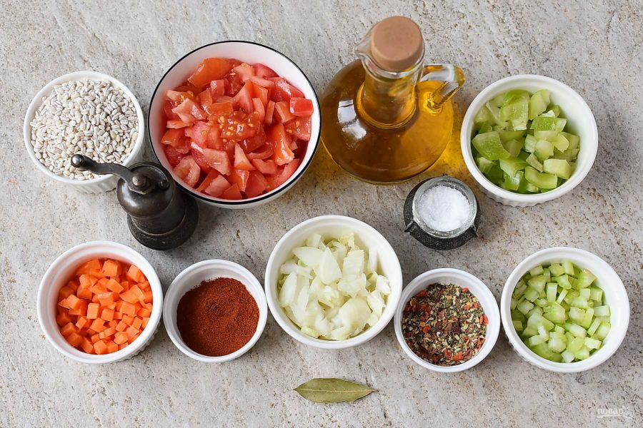 Подготовьте продукты для супа. Овощи очистите и нарежьте кубиками.