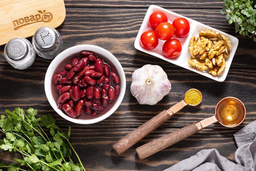 Ниже я расскажу подробнее, как приготовить постный салат с красной фасолью. Вместо кинзы в салат можно добавить петрушку, укроп и зеленый базилик. Если хотите сделать салат более сытным, добавьте в него ржаные сухарики. Салат хорошо насыщает благодаря фасоли и грецким орехам, можно подавать его вместо гарнира к основному блюду.Состав / Ингредиенты: