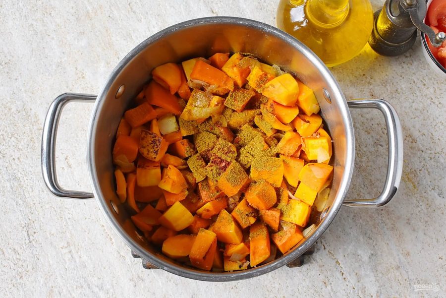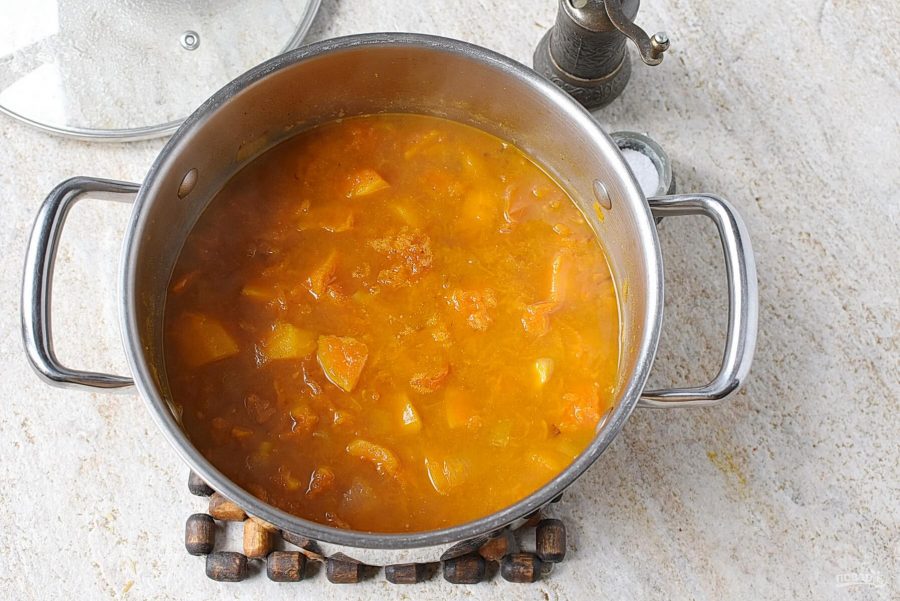 накройте крышкой и варите на медленном огне до мягкости тыквы.