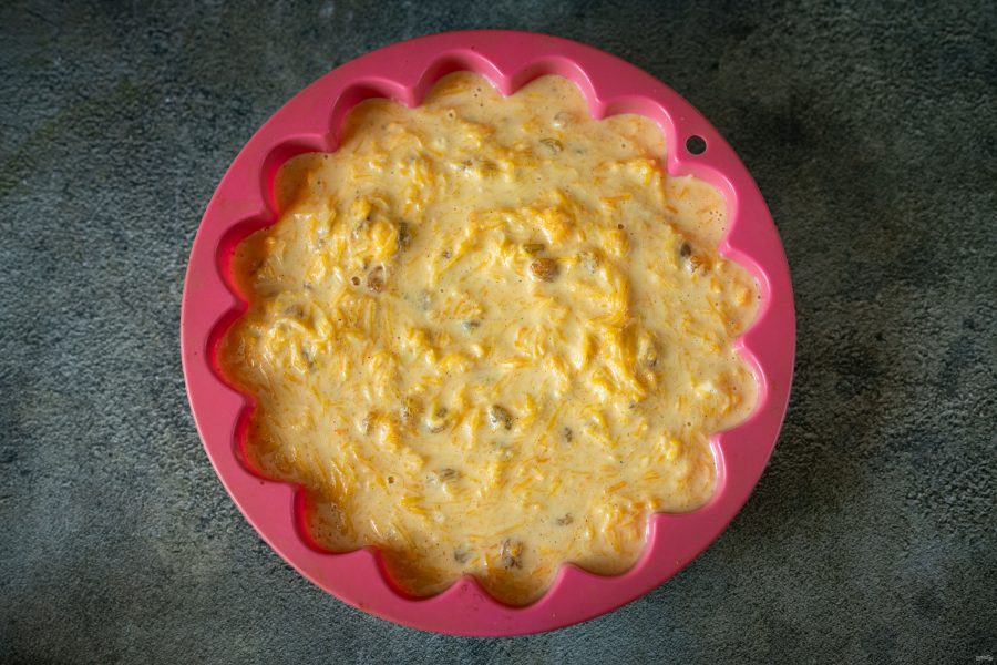 Тесто выложите в силиконовую форму и отправьте выпекаться в заранее разогретую до 180 градусов духовку на 40-45 минут.