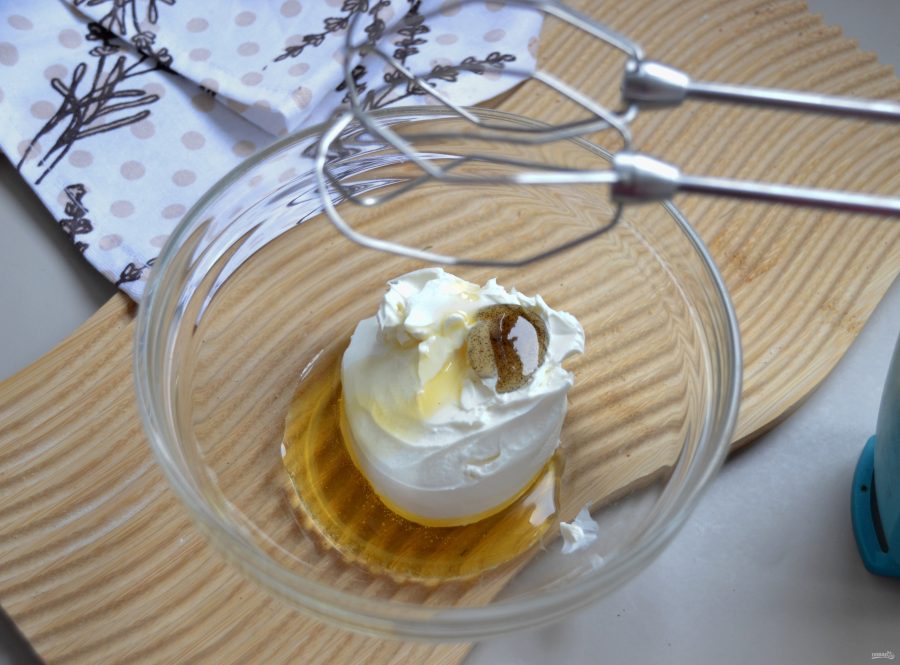 Взбейте сливочный творожный сыр (или рикотту) с добавлением меда (или сиропа топинамбура), добавьте 1 ч.л. ванильной пасты.