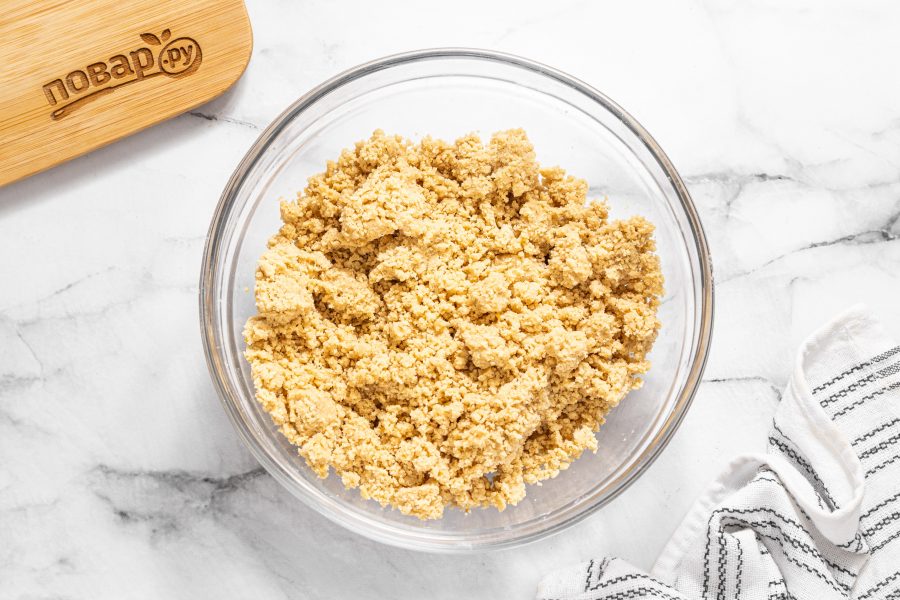 Масса по консистенции должна получится однородной, тугой, не рассыпаться в крошку. Допустимо добавить еще 1-2 ст.л. молока, если масса остается слишком сухой, но не переборщите.