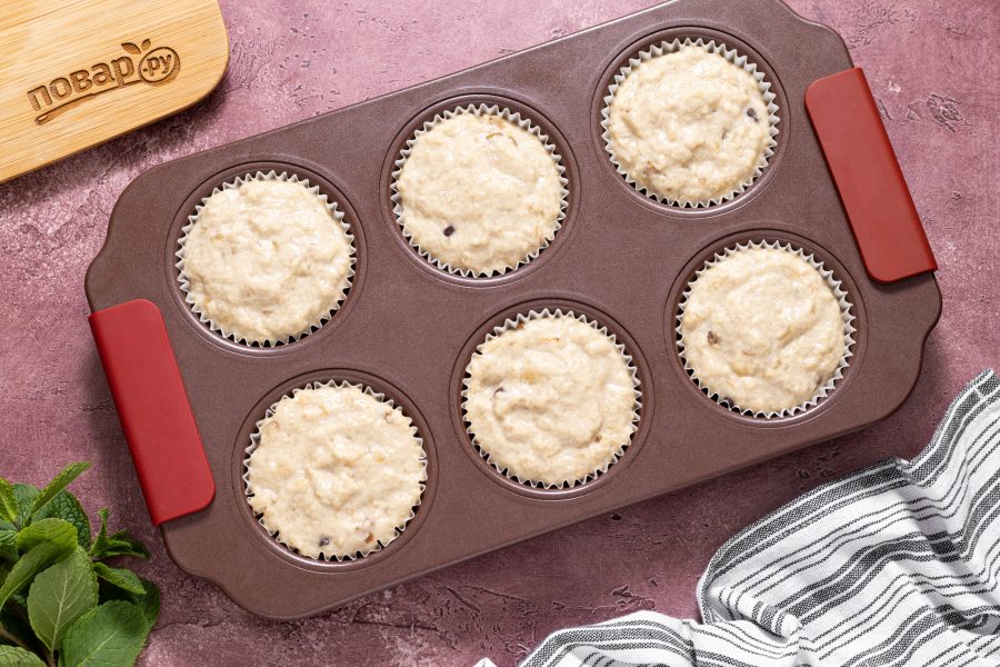 Разложите получившееся тесто по формам для выпечки. Выпекайте кексы 30-35 минут в разогретой духовке при температуре 180 градусов.