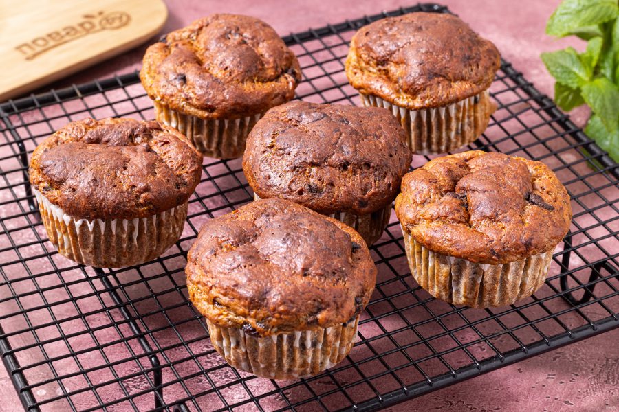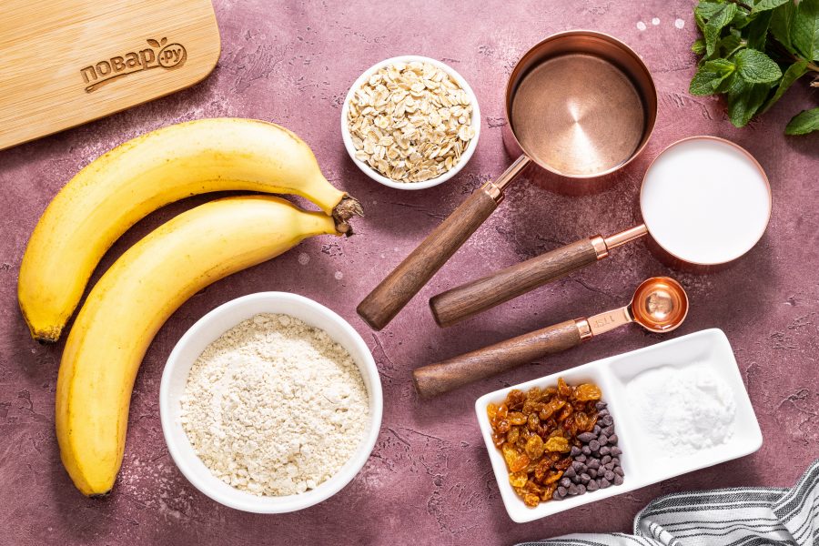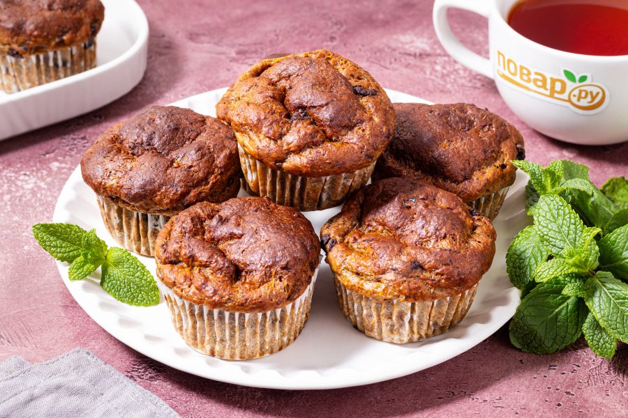 Ниже я расскажу подробнее, как приготовить протеиновые маффины. Банан выбирайте обязательно спелый, так маффины получатся слаще и ароматнее. Вместо шоколадных капель и изюма можно добавить любые крупно порубленные орешки или сухофрукты, например, вяленую вишню, курагу или цукаты. Главная особенность рецепта в том, что маффины пекутся без муки и сахара, на основе пшеничного глютена — концентрированного пшеничного белка. Получаются румяные красивые кексы, ароматные и упругие, они отлично подойдут для полезного перекуса!Состав / Ингредиенты: