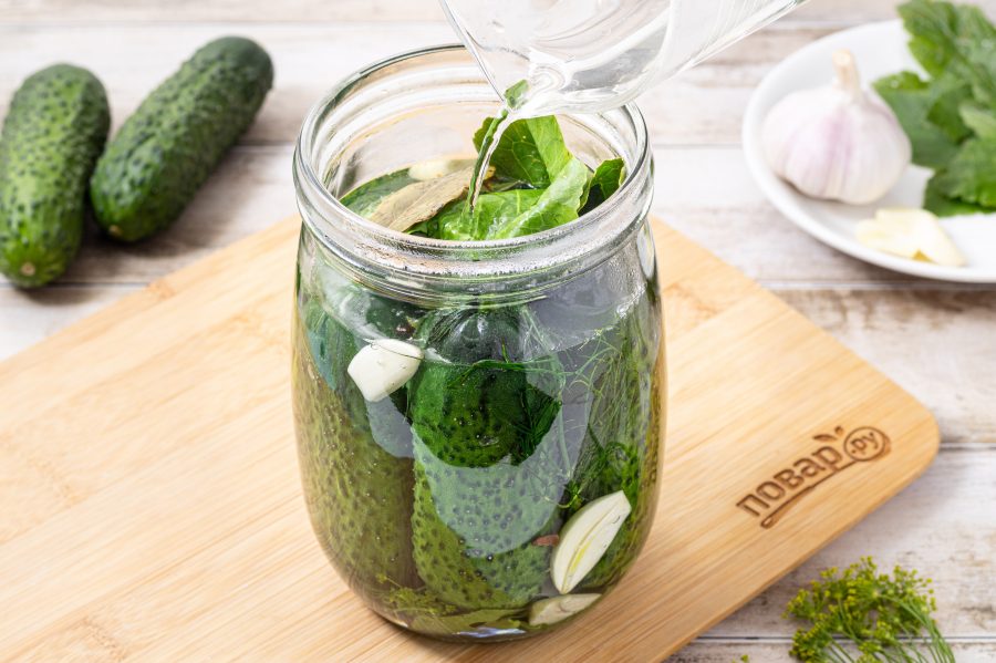 Малосольные огурчики в банке готовятся проще простого. Нужно просто залить их рассолом, добавить чеснок и зелень, а на следующий день они уже будут готовы.