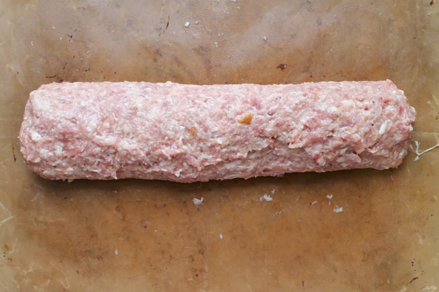 Все тщательно перемешайте до однородности и отбейте фарш до плотной, гладкой массы. Соберите фарш в руку, поднимите над миской и бросьте обратно, сделайте так 10-15 раз.
