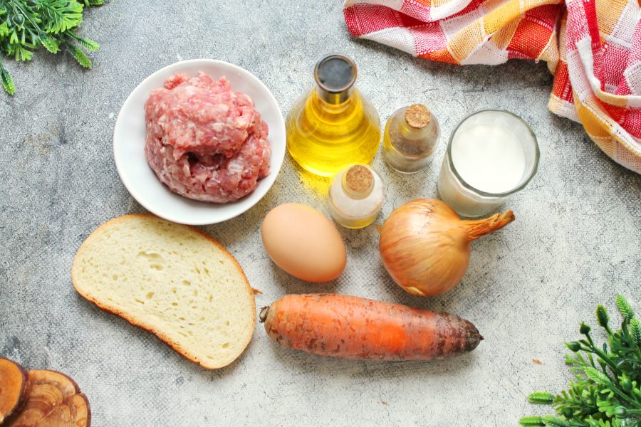 Булку поломайте на кусочки и выложите в миску. Влейте к булке молоко и перемешайте. Дайте постоять при комнатной температуре 5 минут.