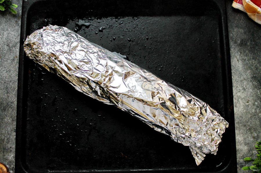 Заверните рулет в пергамент, а затем в фольгу для запекания.