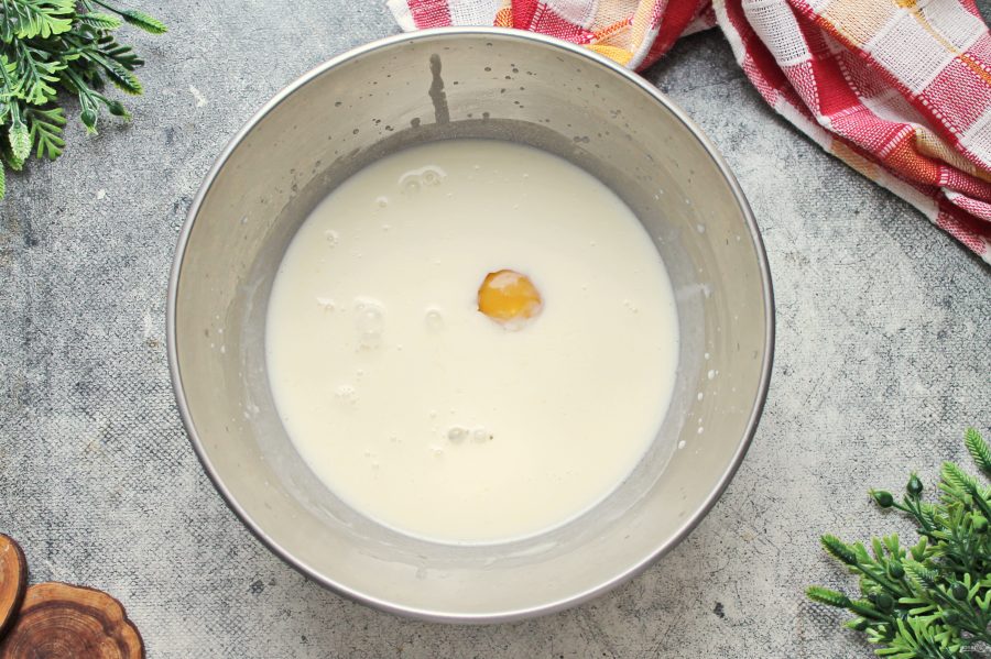 Влейте в массу холодное молоко и перемешайте до однородности. Холодное молоко остудит массу и сделает ее подходящей для замешивания.