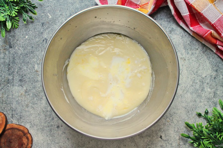 Раскрошите в массу дрожжи и перемешайте до однородности.