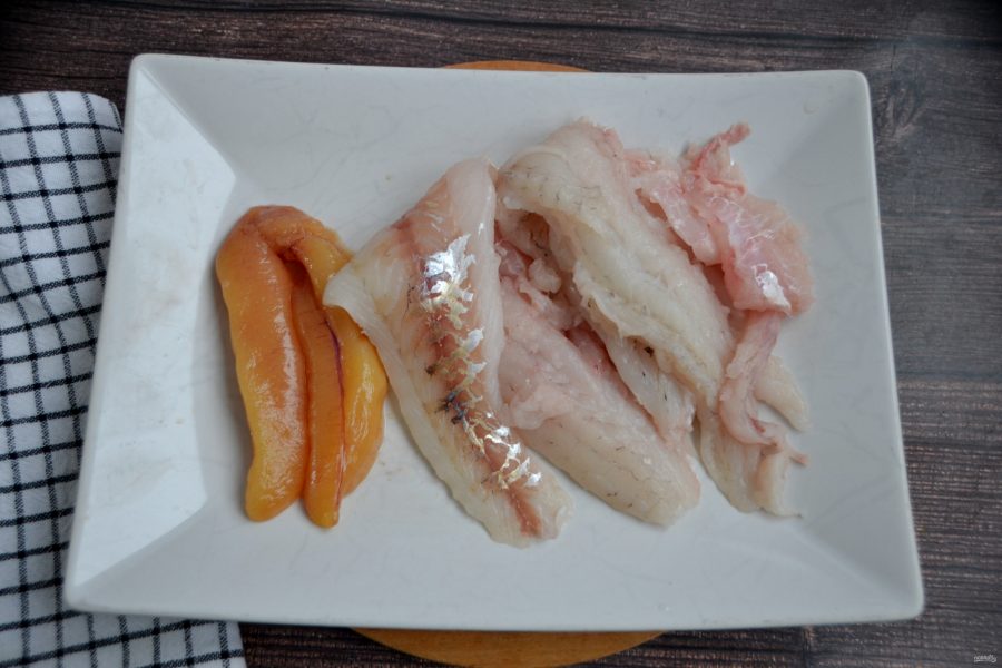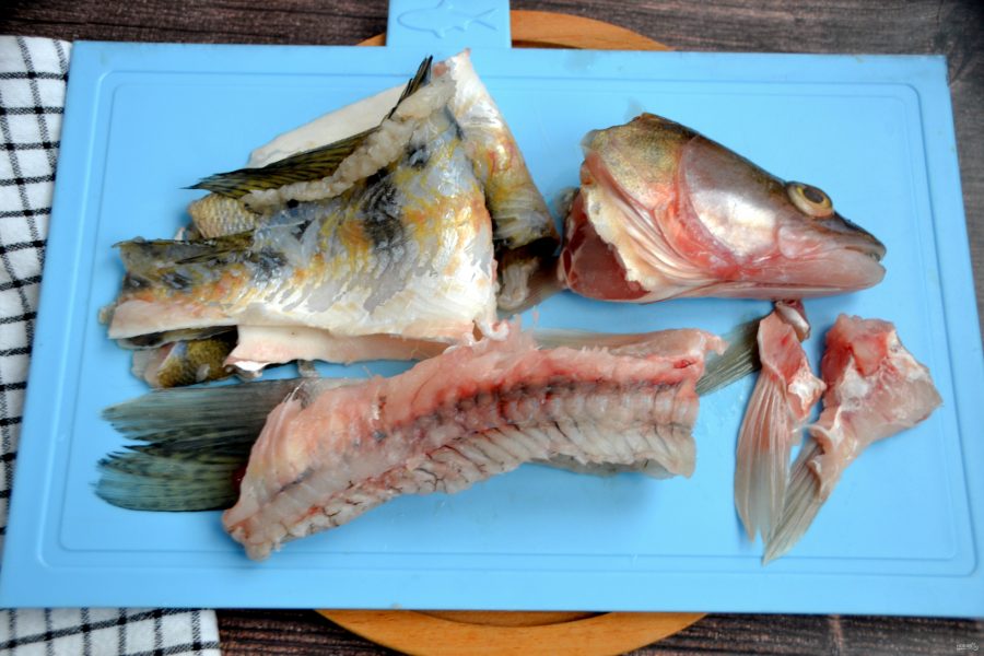 Удалите внутренности, отделите голову, уберите из нее жабры, отделите плавники, снимите кожу, отделите хребтовую кость.