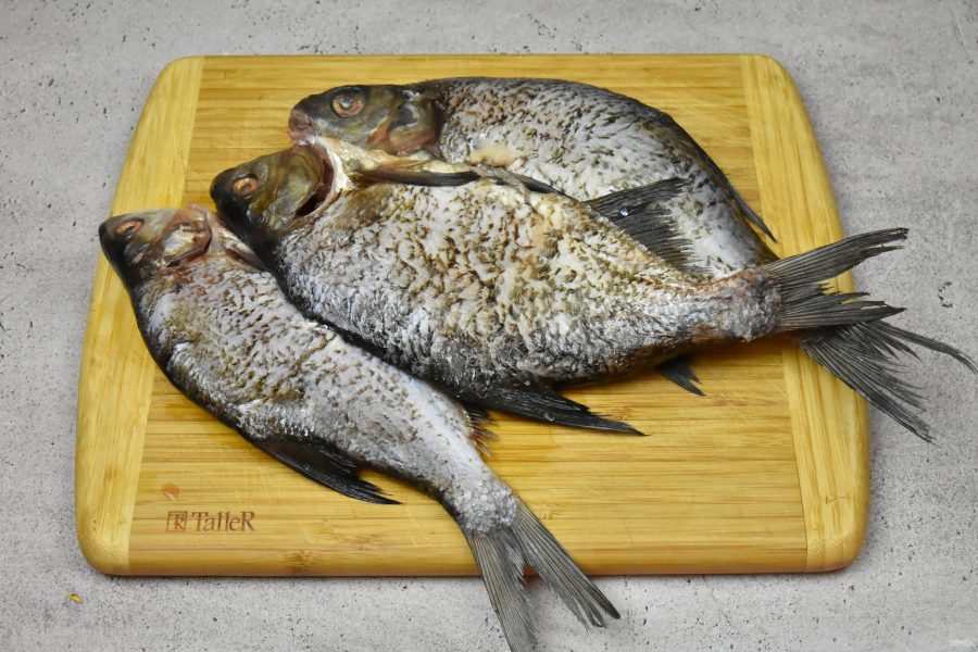 В данном случае я использовала небольшие экземпляры лещей. Предварительно очистите рыбу от чешуи, срежьте филе с костей, удалите кожу и крупные реберные кости. Филе перекрутите дважды на мясорубке с мелкой решеткой. Из голов и хребтов сварите рыбный бульон.
