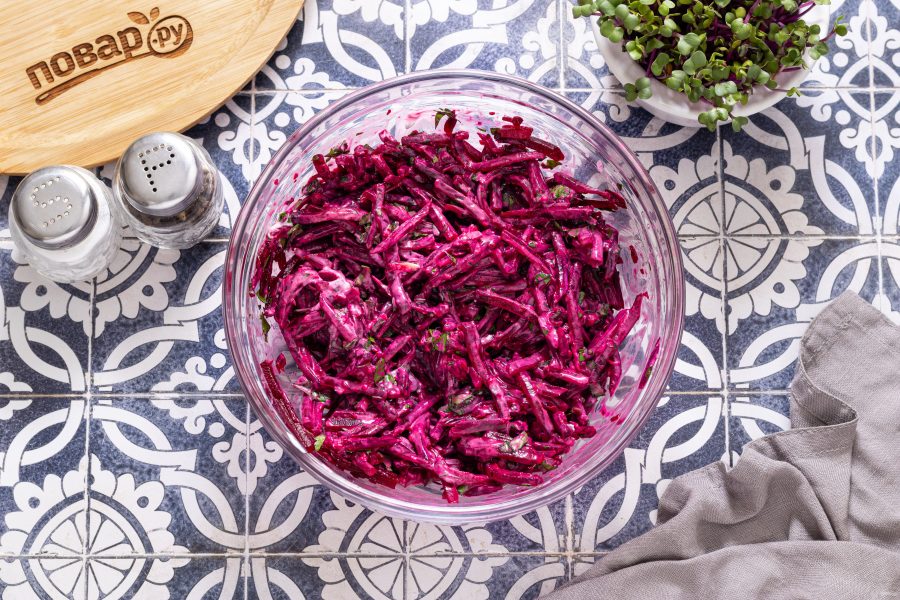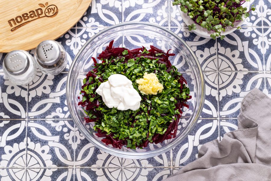 Ниже я расскажу подробнее, как приготовить салат из вареной свеклы. Вместо петрушки можно добавить кинзу или укроп. В качестве заправки можно также использовать сметану или греческий йогурт, а для постного варианта заправить салат растительным маслом.