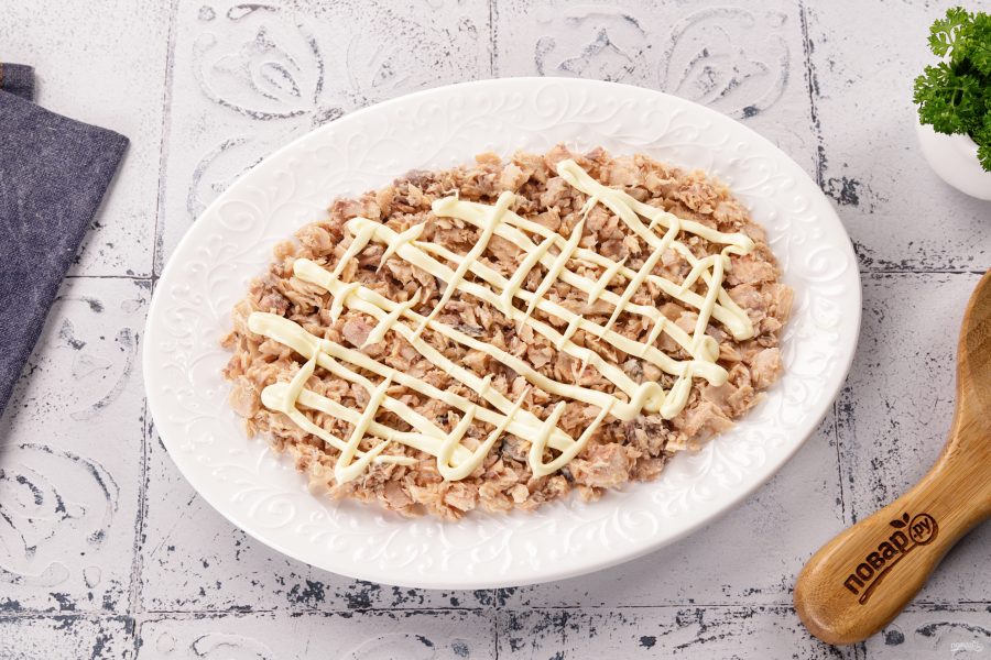 Я делаю такой же только не с горбушей а с сайрой консервой. Салат очень вкусный!