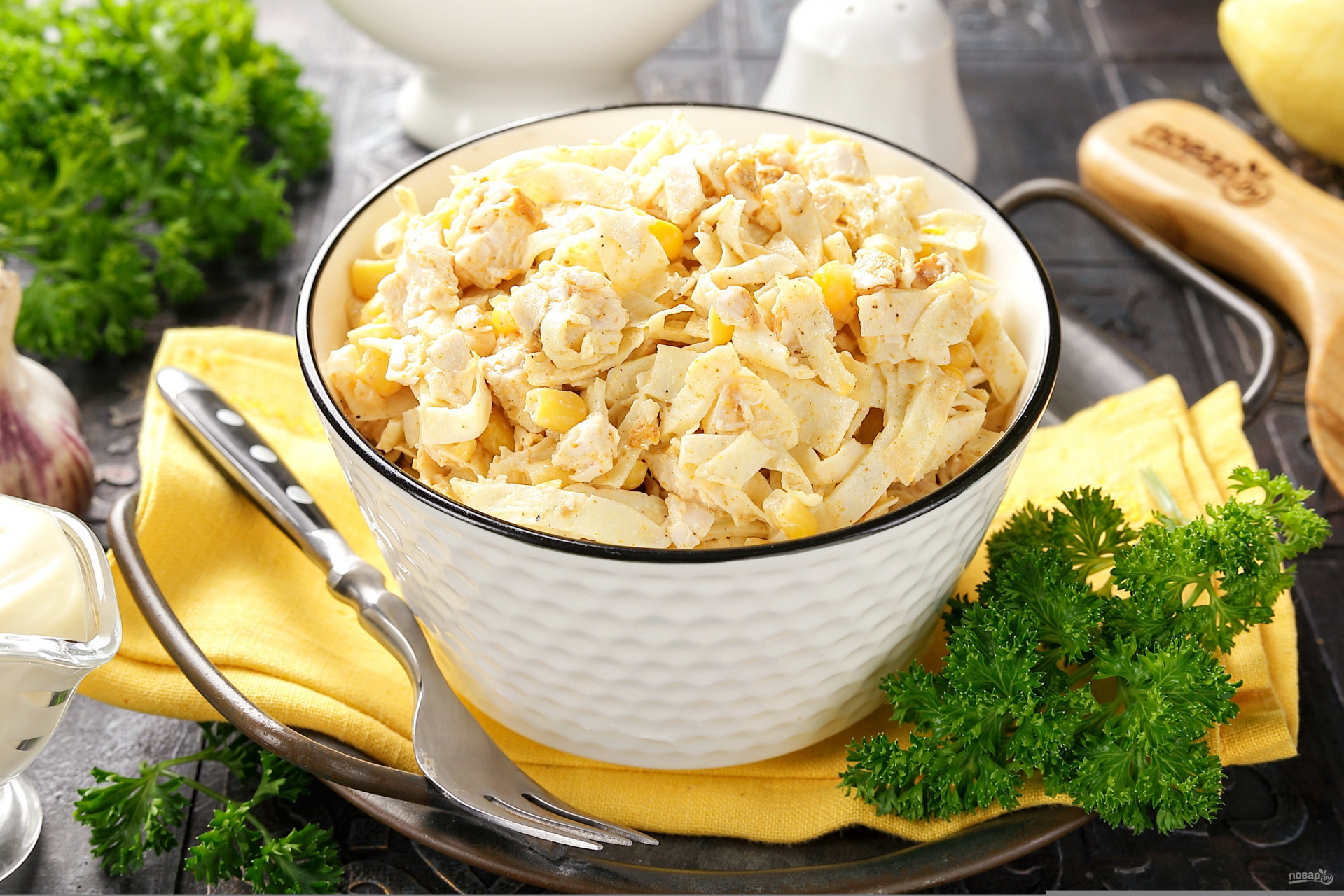 Салат с курицей и макаронами