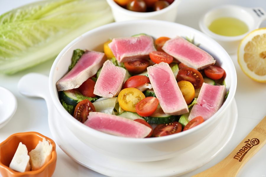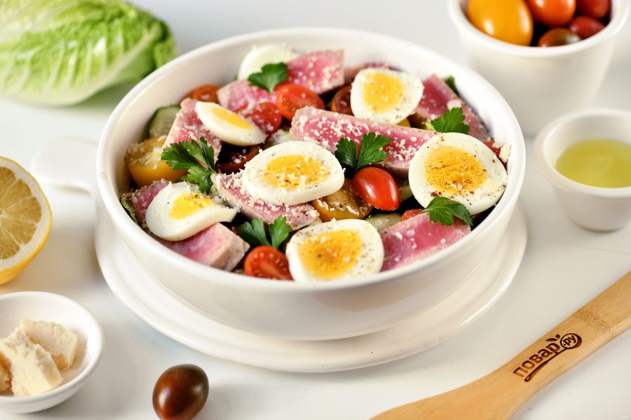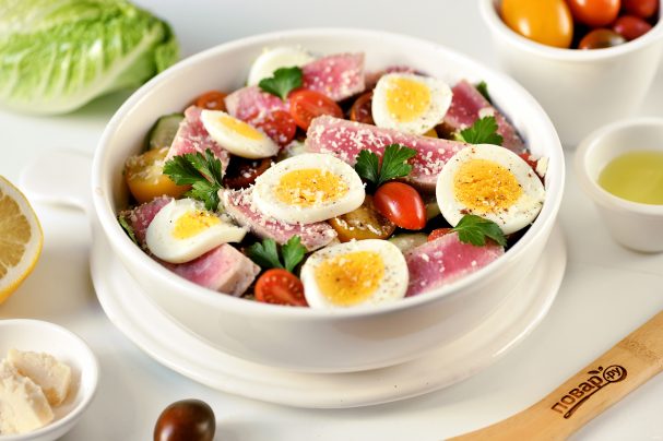 Салат с отварным тунцом