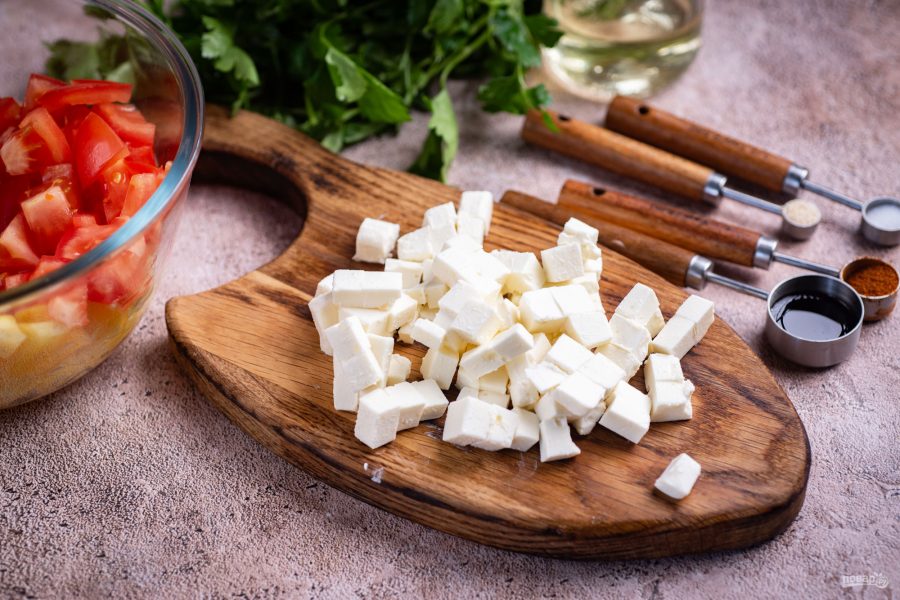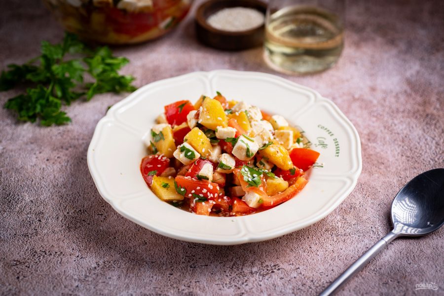 Салат с сыром, ананасом и помидорами