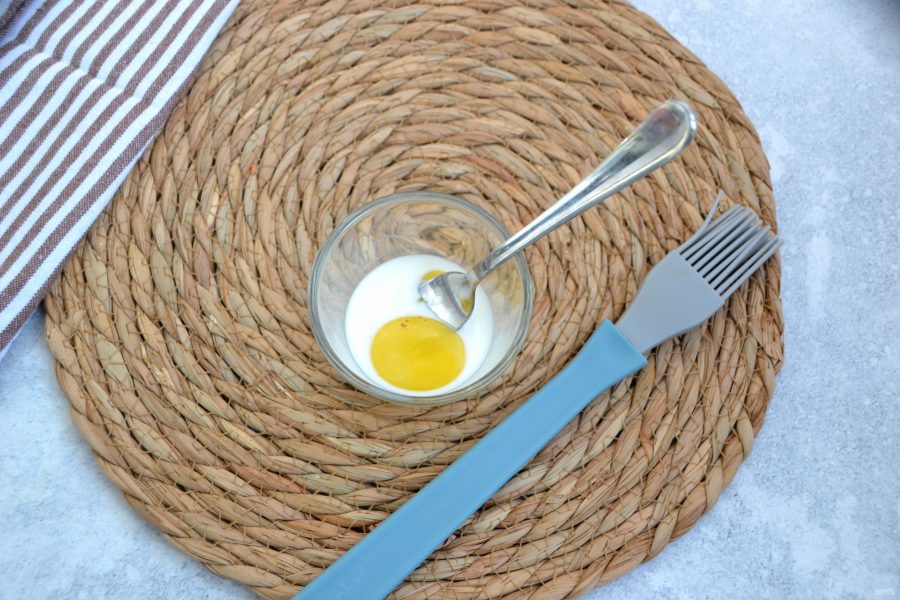 Подготовьте для смазывания один яичный желток, смешанный с 1 ст. ложкой молока, вместо молока можно просто взять воду.