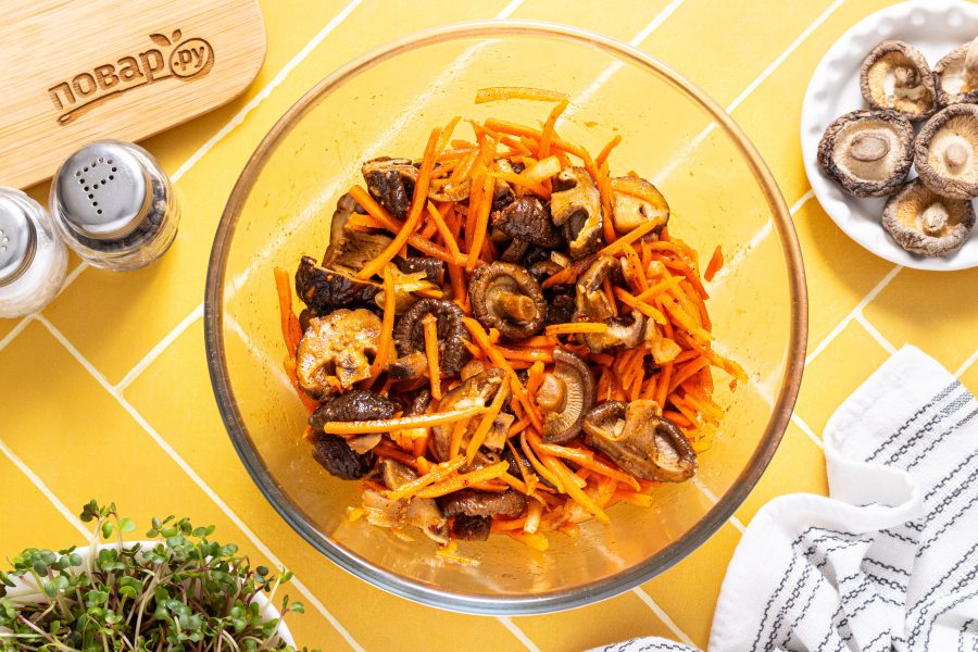 Ниже я расскажу подробнее, как приготовить шиитаке по-корейски. Вместо приправы для моркови по-корейски можно просто добавить молотую паприку, черный перец, кориандр, базилик и куркуму по вкусу, а рисовый уксус заменить на яблочный. Для более интенсивного вкуса закуски можно добавить глутамат натрия. Грибы шиитаке хорошо впитывают в себя все соусы и специи, поэтому получаются очень сочными и ароматными. Подавать такую закуску можно к рису или отварному картофелю.Состав / Ингредиенты: