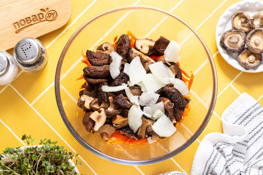 Сушеные шиитаке предварительно замочите в теплой воде на 2-3 часа. Можно оставить на ночь. После промойте грибы, переложите в кастрюлю и залейте чистой водой. Варите их в кипящей воде 15-20 минут.