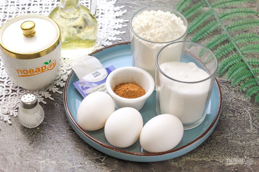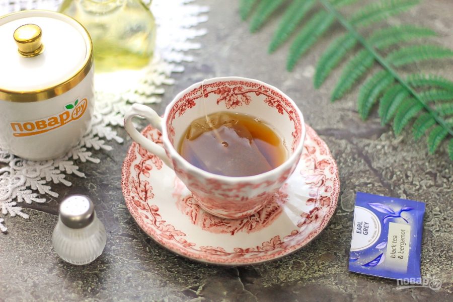 В чашке или стакане заварите чай кипятком и оставьте на 5 минут. Используя заварку, процедите потом всю жидкость через ситечко, чтобы чаинки не попадались в тесте.