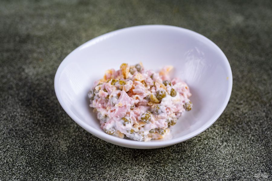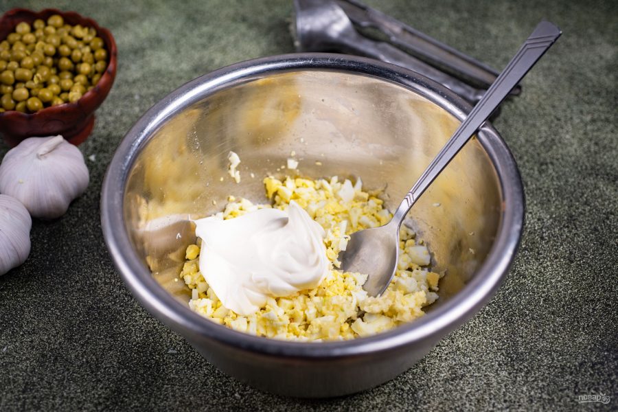 консервированный горошек, добавьте 2 ст.л. майонеза.