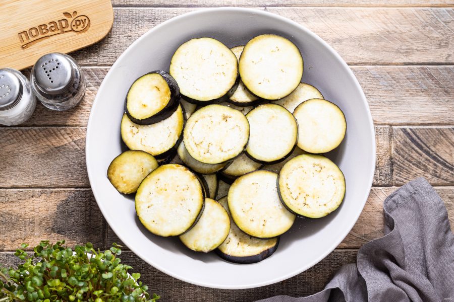 Подсолите, оставьте на 15-20 минут. После промойте в холодной воде и обсушите с помощью бумажных полотенец.