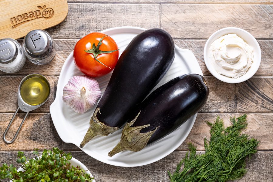 Ниже я расскажу подробнее, как приготовить слоеный баклажан. Баклажаны выбирайте небольшой или среднего размера, чтобы по диаметру они примерно совпадали с нарезанным на кружочки помидорами. Вместо творожного сыра начинку можно сделать из тертого сыра с майонезом. Укроп можно заменить на мелко порезанную кинзу, петрушку или сушеные итальянские травы. Слоеный баклажан можно приготовить как для повседневного меню, так и разнообразить такой закуской праздничный стол!Состав / Ингредиенты: