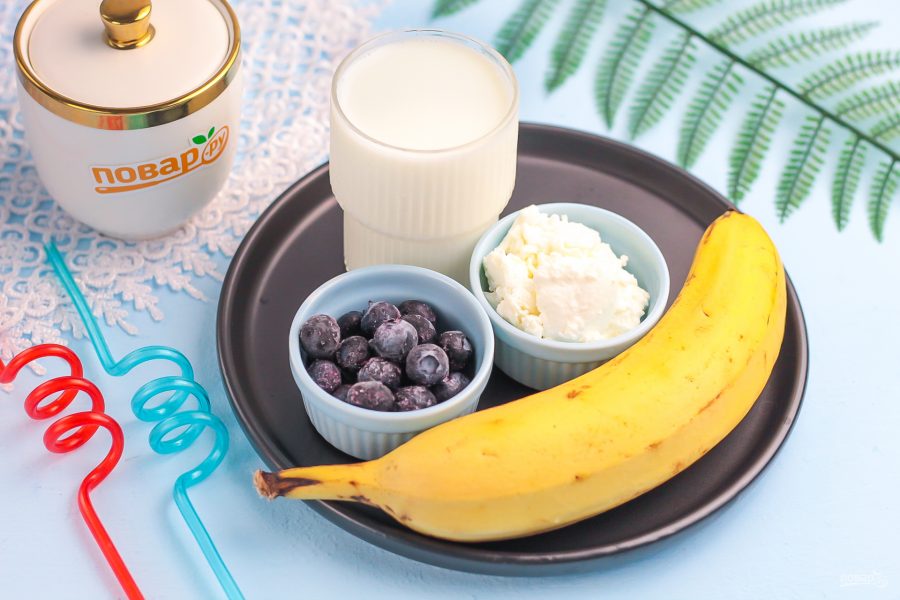 Подготовьте указанные продукты. Чтобы молоко не свернулось, не используйте цитрусовые! Лучше всего подойдут банан, груша, яблоко, голубика, малина, клубника и т.д.