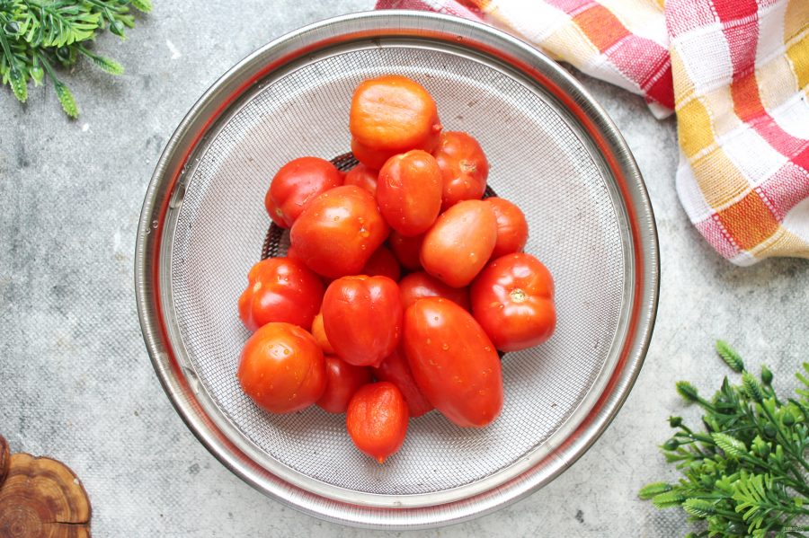 Плоды переберите, убирая, мятые, мягкие и порченые плоды. Помидоры вымойте и дайте полностью высохнуть, разложив на полотенце.
