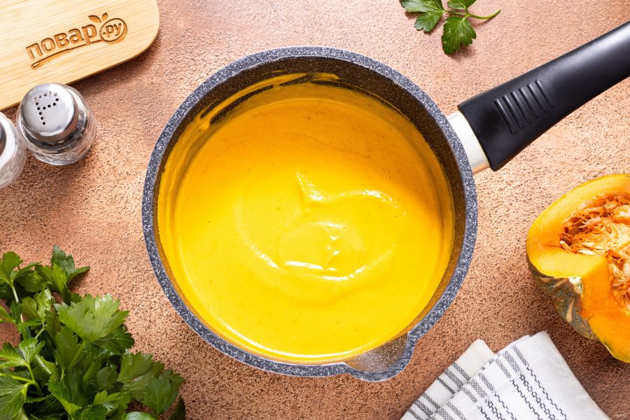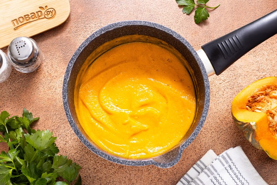 Погружным блендером измельчите овощи до консистенции однородного пюре.