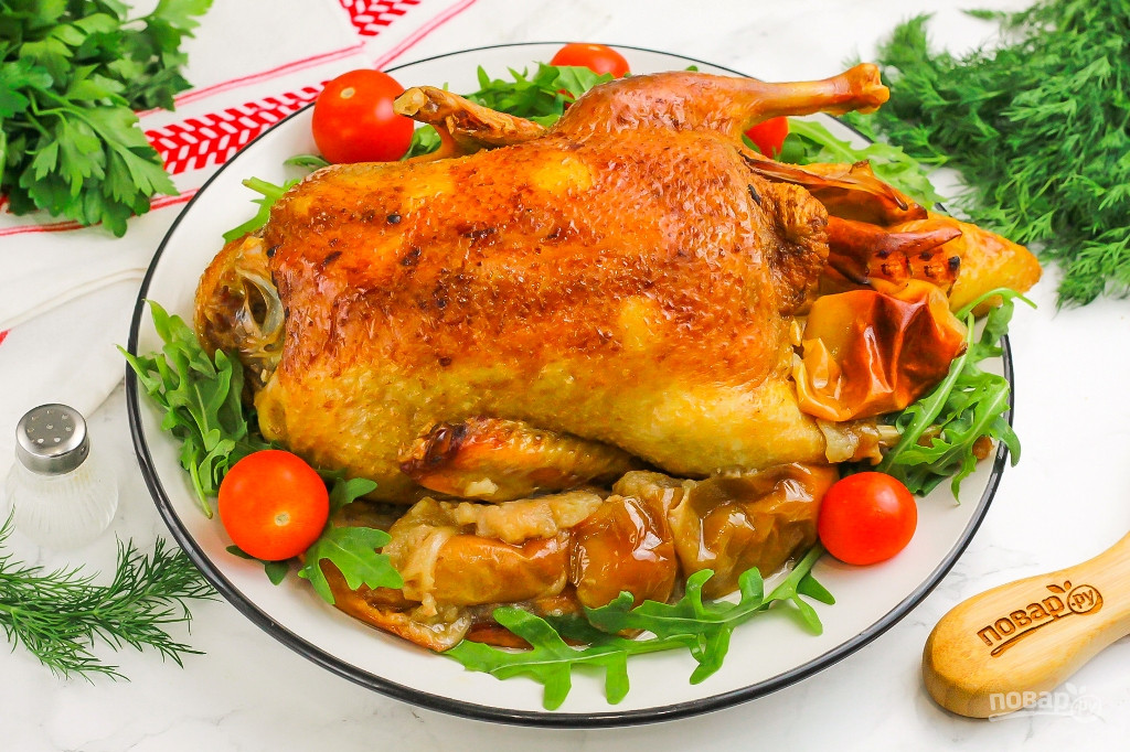 Обмажьте утку снаружи и внутри приготовленным соусом и оставьте на 2-3 часа при комнатной температуре.