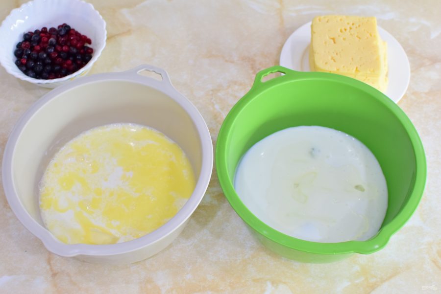Для сладких вафель соедините молоко с растопленным сливочным маслом, а для несладких — кефир с растительным маслом.
