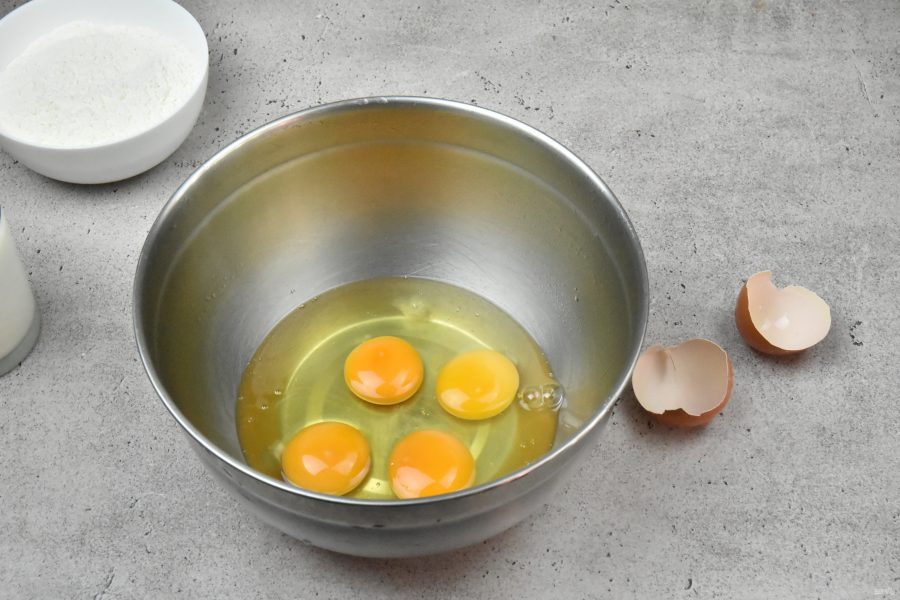 Муку соедините с разрыхлителем, просейте через мелкое сито и добавьте к жидкой основе. Замесите тесто. По консистенции тесто похоже на оладьевое.