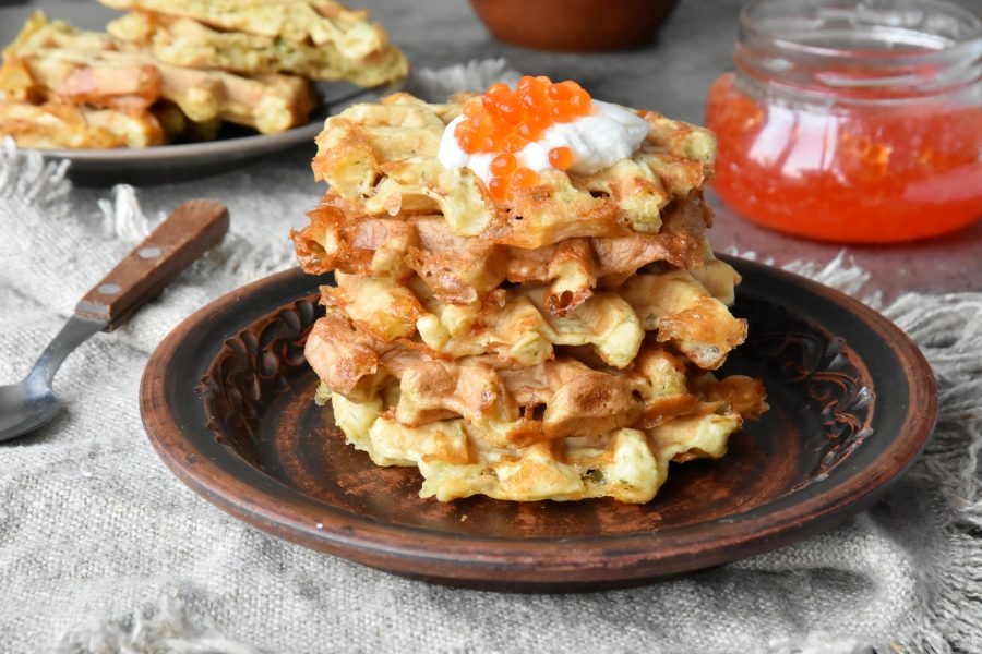 Готовим мягкие вафли с кабачком и сыром. Несладкие вафли можно подать на завтрак дополнив их творожным сыром, яйцом пашот или слайсами ветчины.