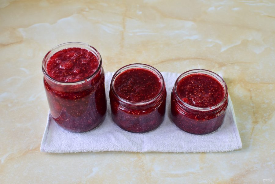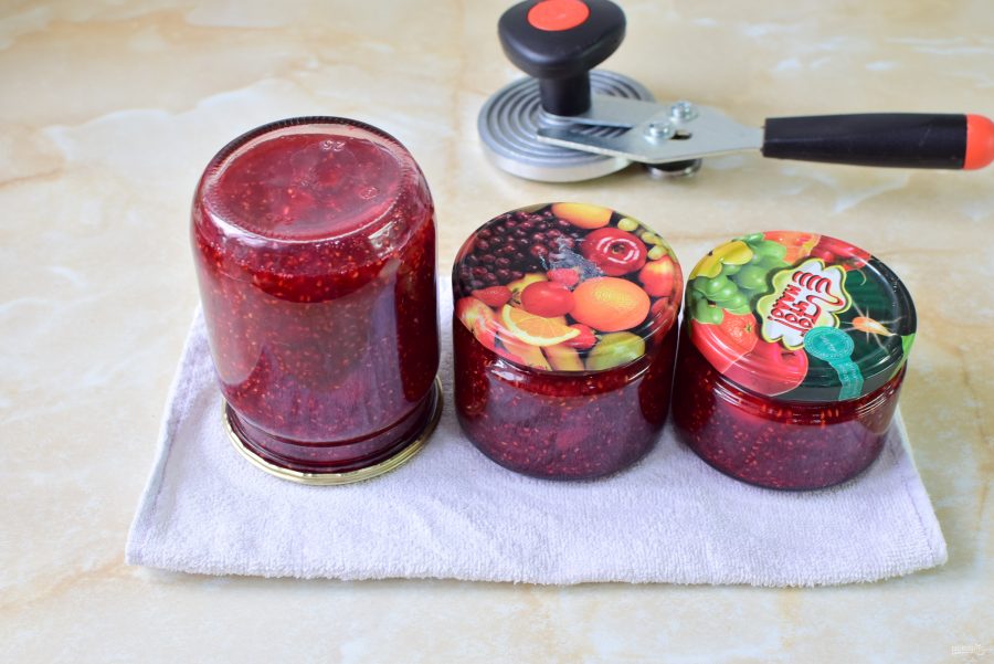 Разложите варенье в подготовленные стерильные банки. Крышки обдайте кипятком. Закрутите варенье крышками.
