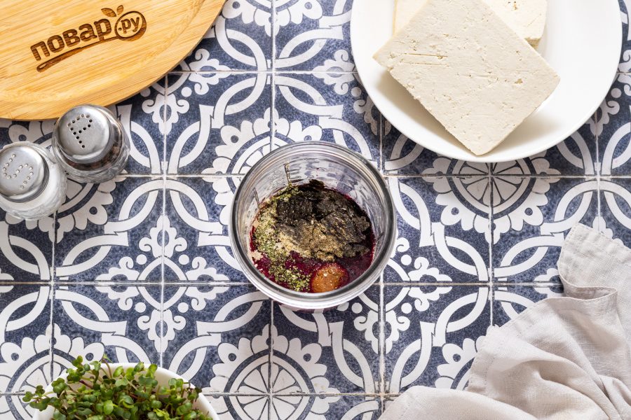 Опустите ломтики тофу в маринад. Оставьте на несколько часов. Чем дольше, тем лучше. Я предпочитаю оставить на ночь и один раз перевернуть ломтики, чтобы они равномерно промариновались с двух сторон.