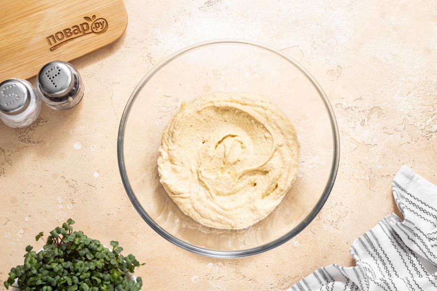 У вас должно получится однородное, чуть липкое тесто. Накройте его пленкой и оставьте при комнатной температуре на 10-15 минут.