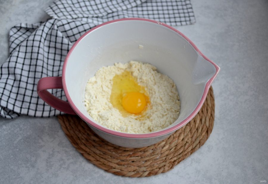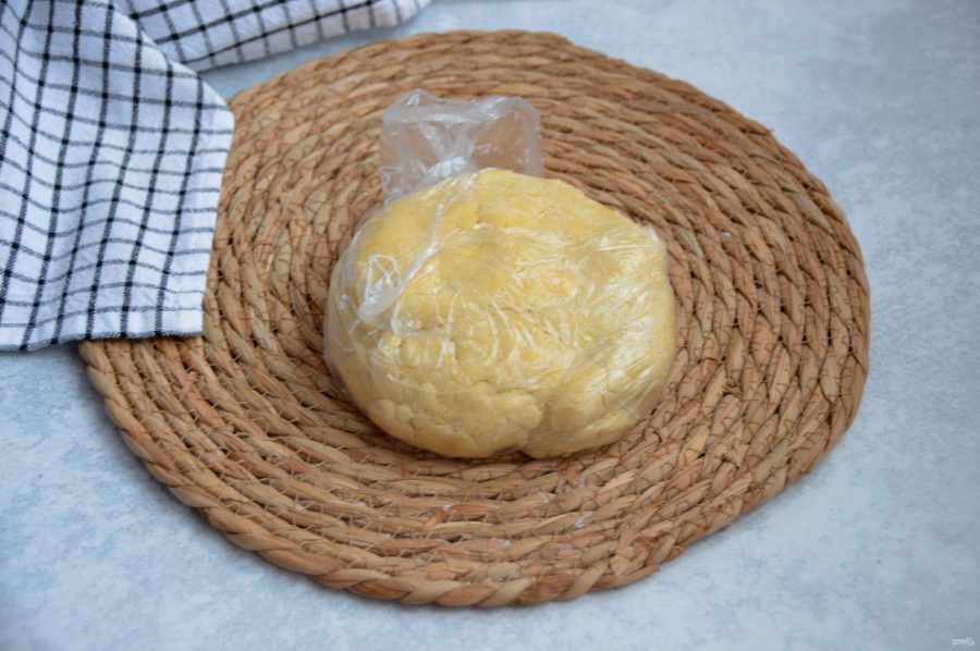 Замесите тесто, долго вымешивать не надо, просто соедините всю массу в комок, заверните в пленку, уберите в холодильник на 30 минут.