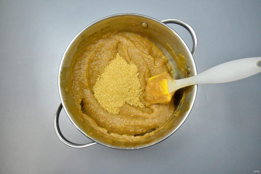 Протрите массу через сито или измельчите погружным блендером до пюреобразного состояния, предварительно удалив специи. Варите пюре, периодически перемешивая, еще около одного часа на минимальном огне до выпаривания влаги. Для избегания разбрызгивания прикройте посуду крышкой.